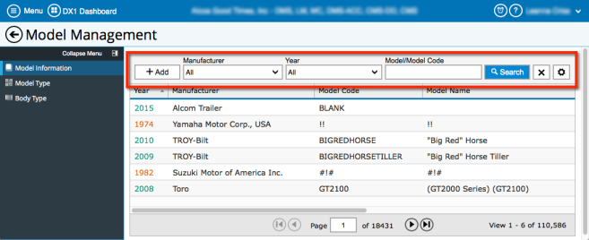 Select the Model Management tile from the "Major Unit" tile set.