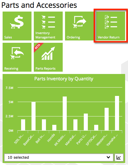 Select the Vendor Return tile from the "Parts and Accessories" tile set.