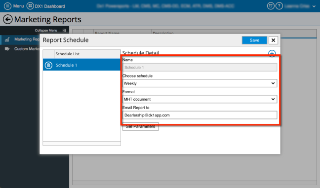 Select the frequency of the report from the Choose schedule drop down menu.