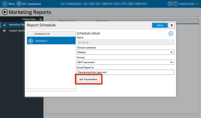 If you would like, click Set Parameters to set parameters on the report.