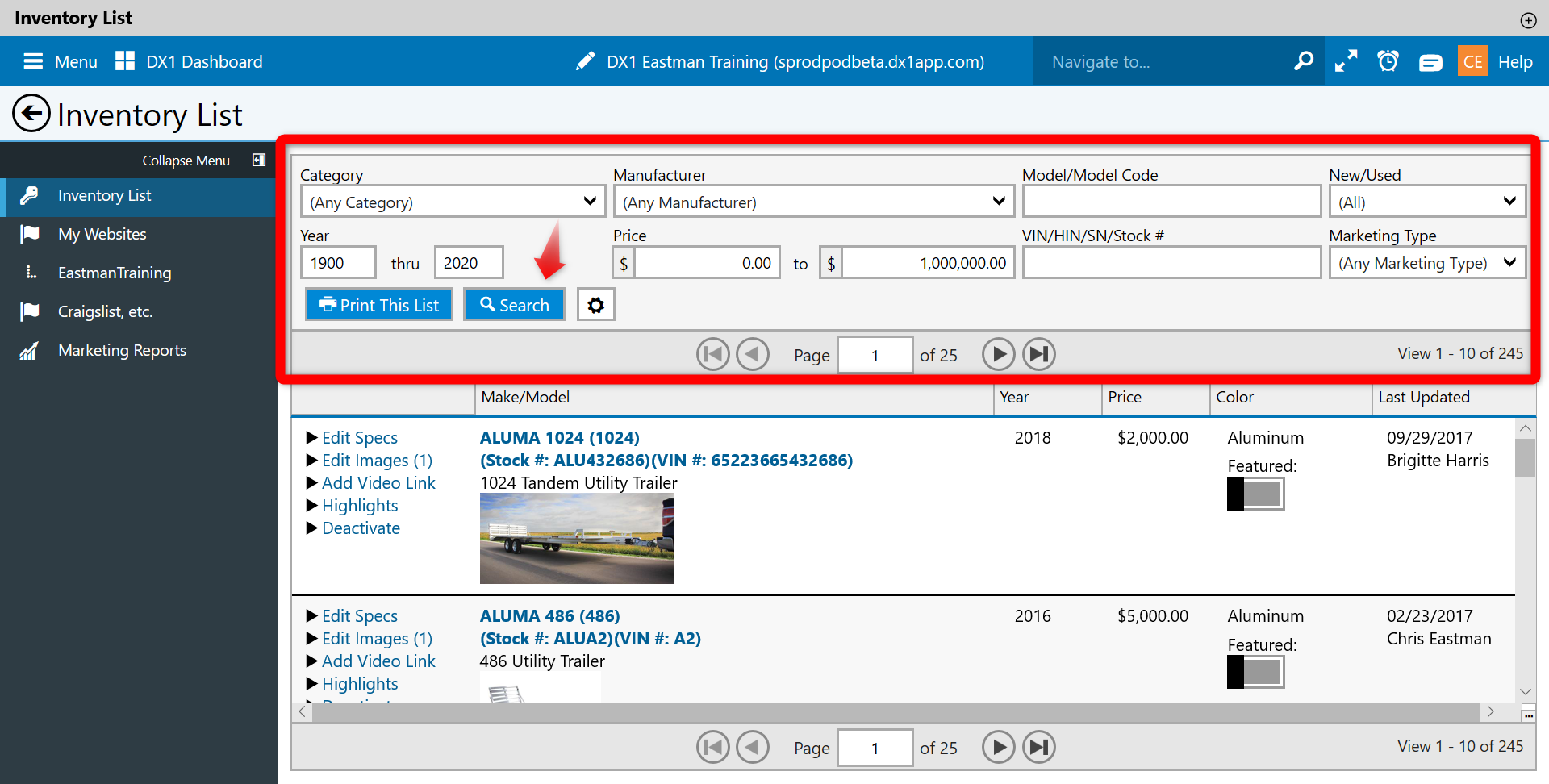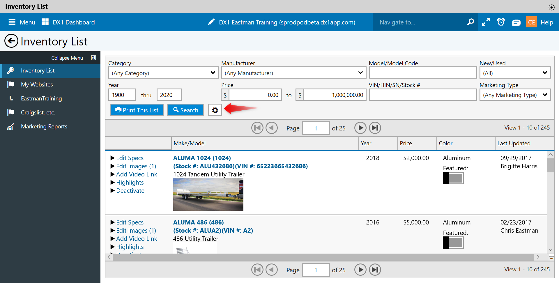 Listing Inventory gives DMS users the ability to push units to the various website options offered by DX1. The user can set the destinations for the unit without having to go through major unit management.