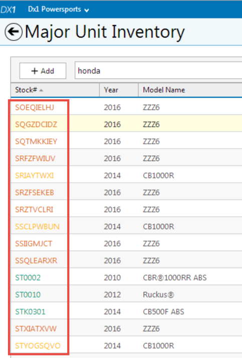 Inventory is labeled green, orange, brown or blue to indicate model status.
