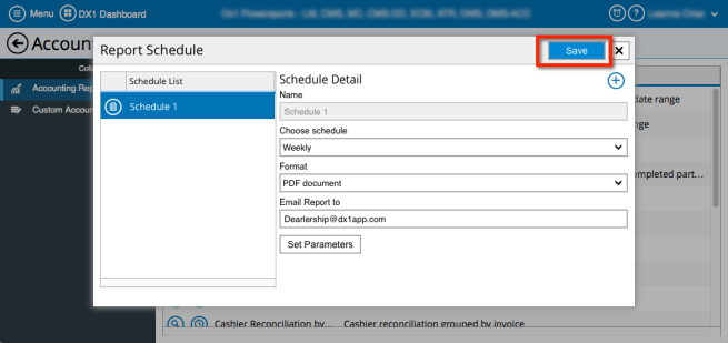 Select the frequency of the report from the Choose schedule drop down menu.