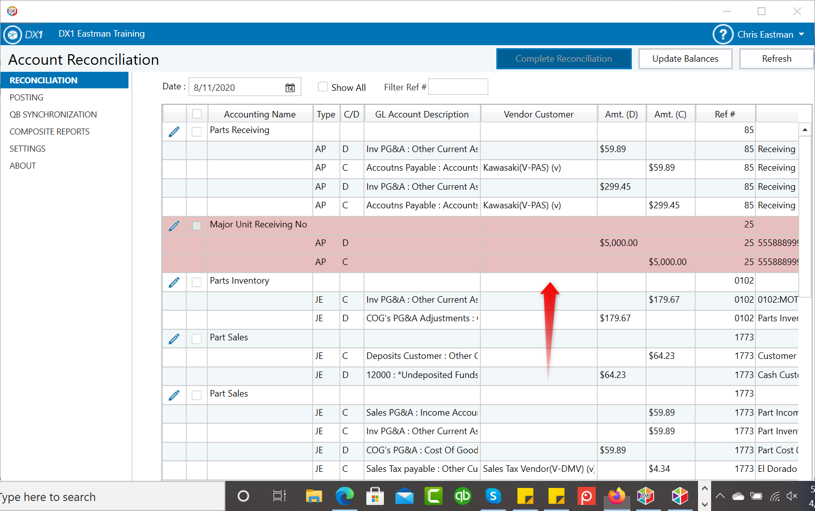 In any reconciliation screen, a pink entry are any accounting entry that has not been mapped to an account: