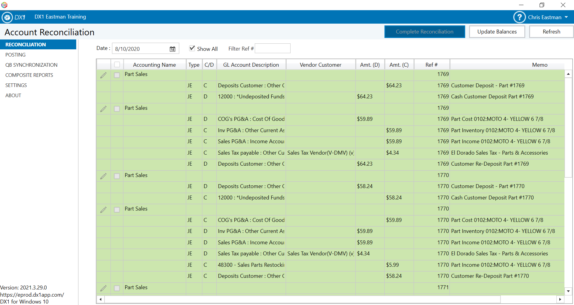 When you click "Show All" in the reconciliation screen, Post Entries are shown as green line items: