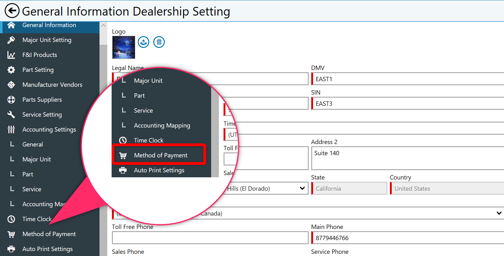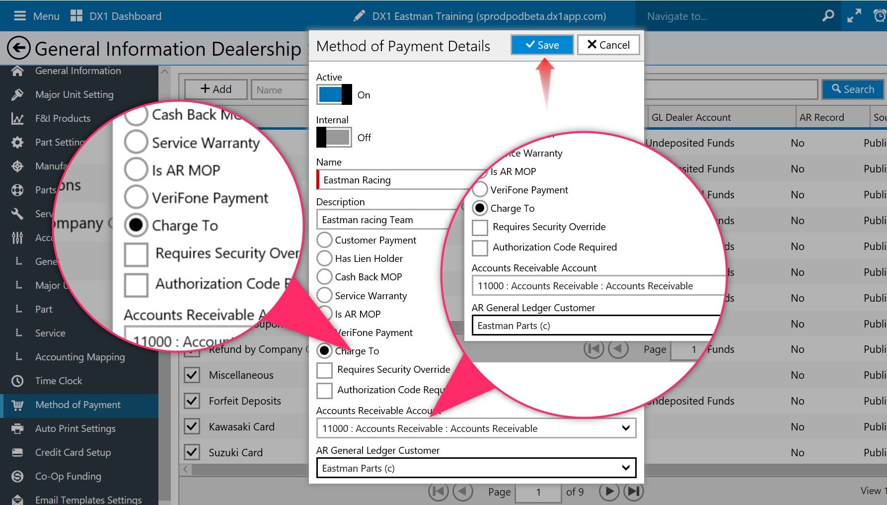 DX1 now offers dealers the ability to create a method of payment that can be used to "Charge To" a specific AR account so the customer does not have to have the AR account under their personal name.
