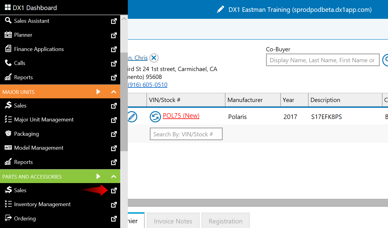 Note: by opening up a new tab the user can move between the Major unit invoice and other areas of DX1