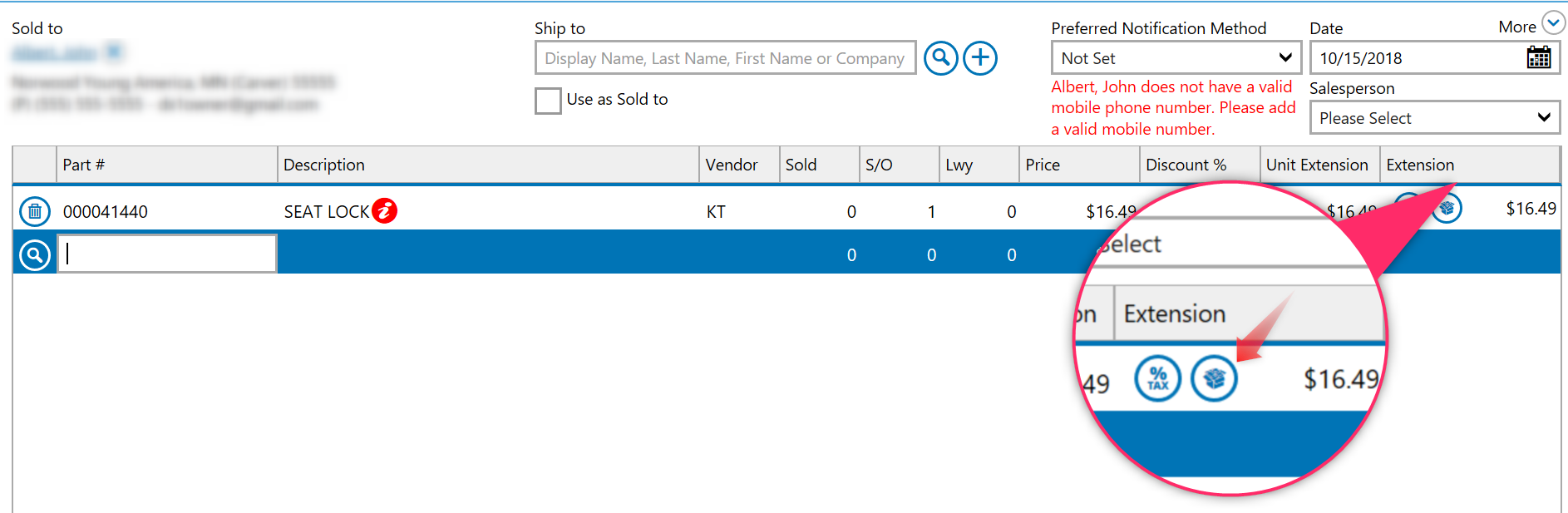 Dealers can now make changes to shipping and restock fees using new icons on the parts invoice screen.