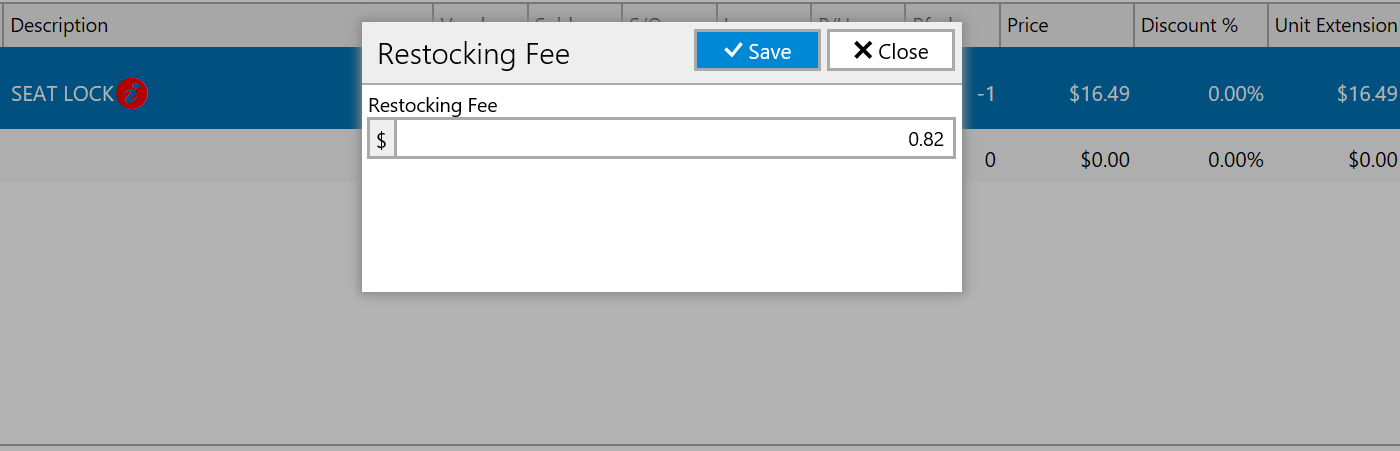 User may also adjust the Restocking Fee in blue in the summary section as well.