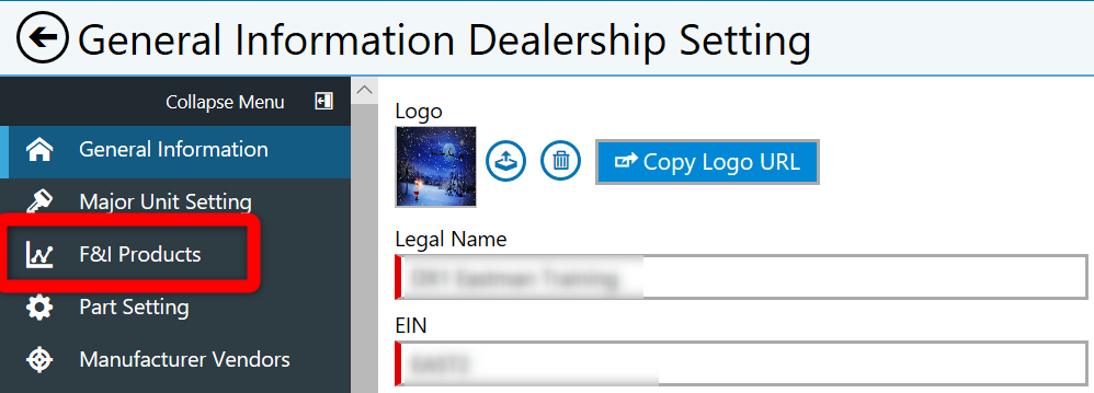 Note: The examples given revolve around checking the F&I products from within Dealership Settings