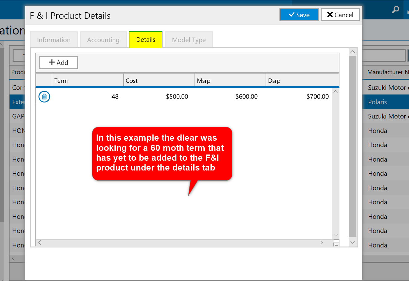 Note: Additional model types can only be chosen for private F&I products added by the dealership