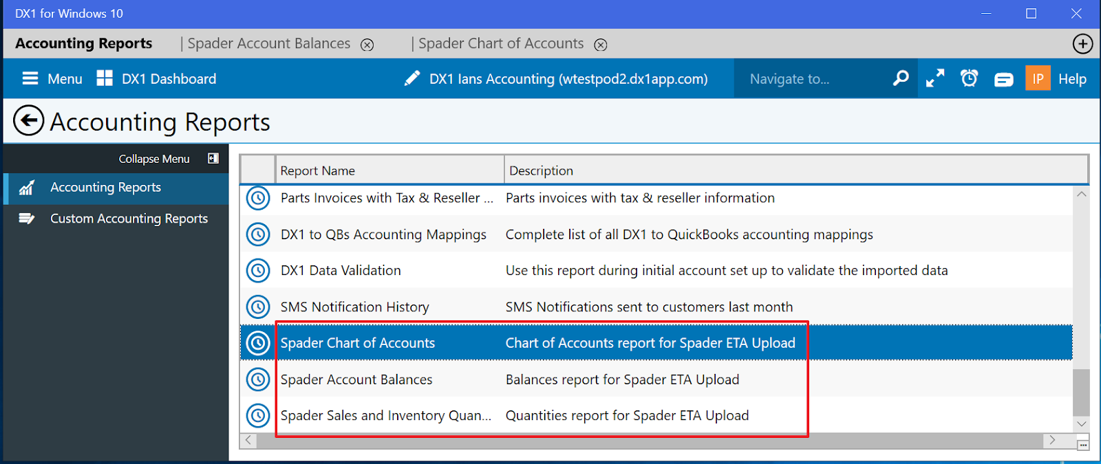 c. In the DX1 Accounting App Click on the “Composite Reports” tab on the left .