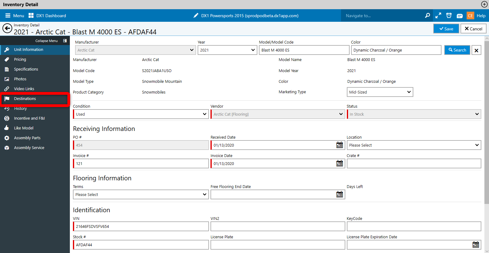 Select the unit from inventory. Once inside inventory detail click Destinations from the menu on the left