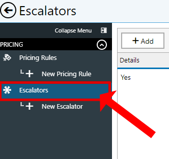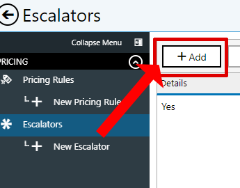 - Next, select Escalators from the menu on the left, then select Add.