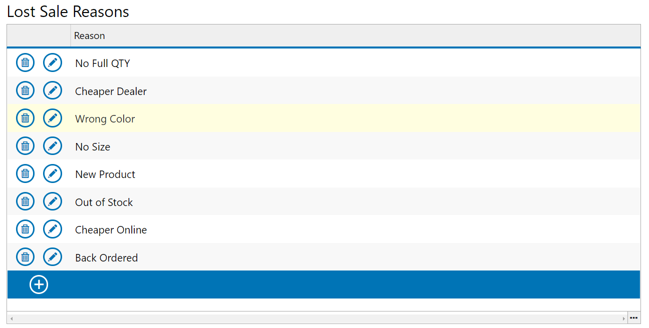 - To delete a reason simply click the trash can icon next to the Lost Sale Reason.