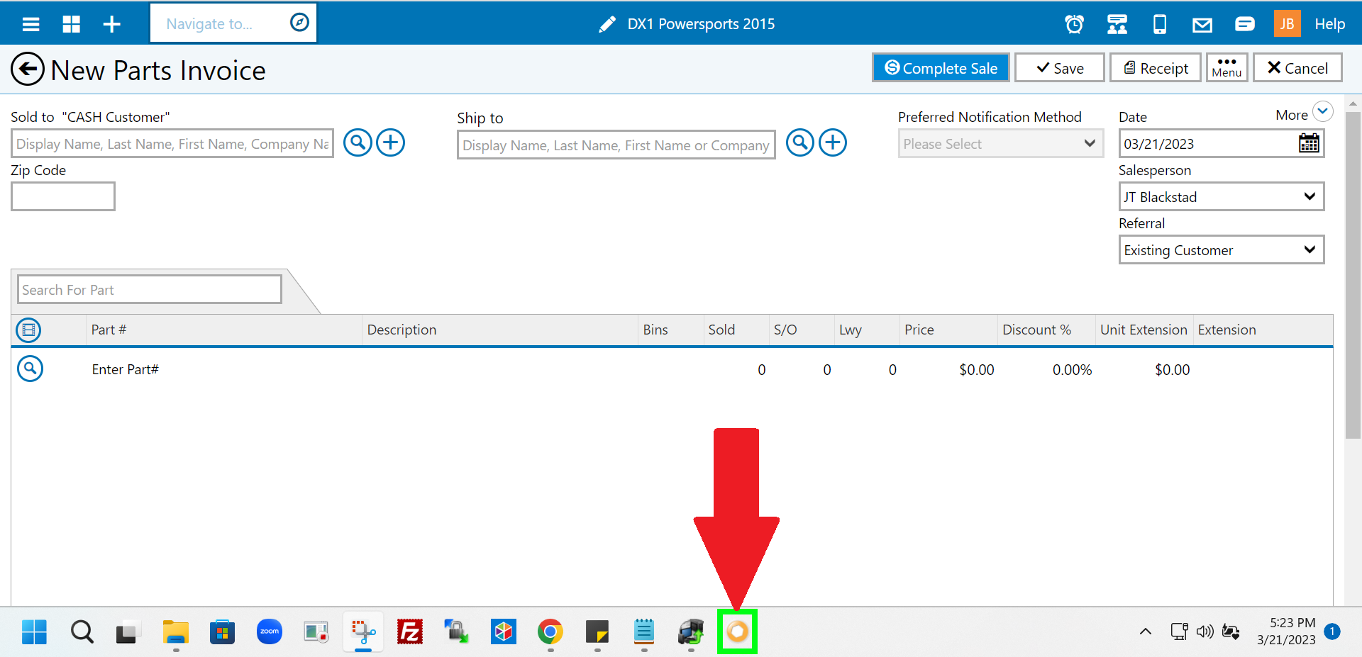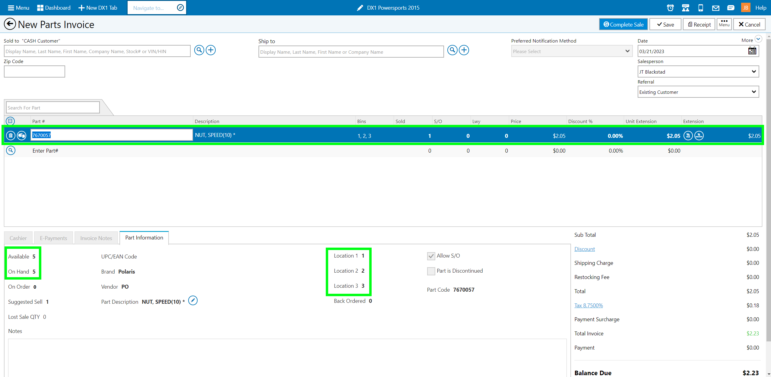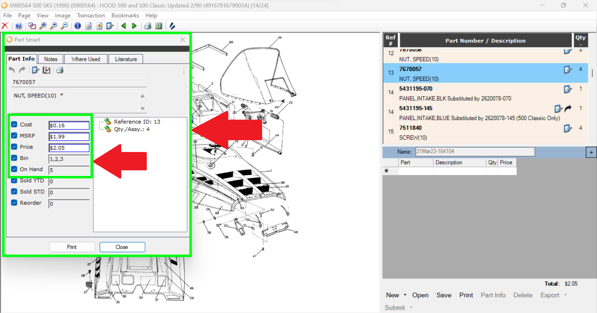 e) This will bring up the parts information pop up, with the integration to DX1 you can see your dealerships part information in the box.