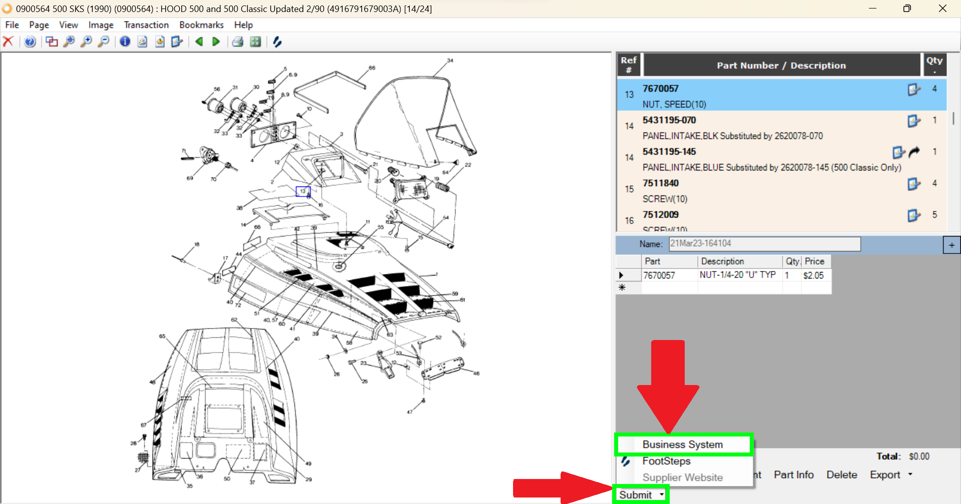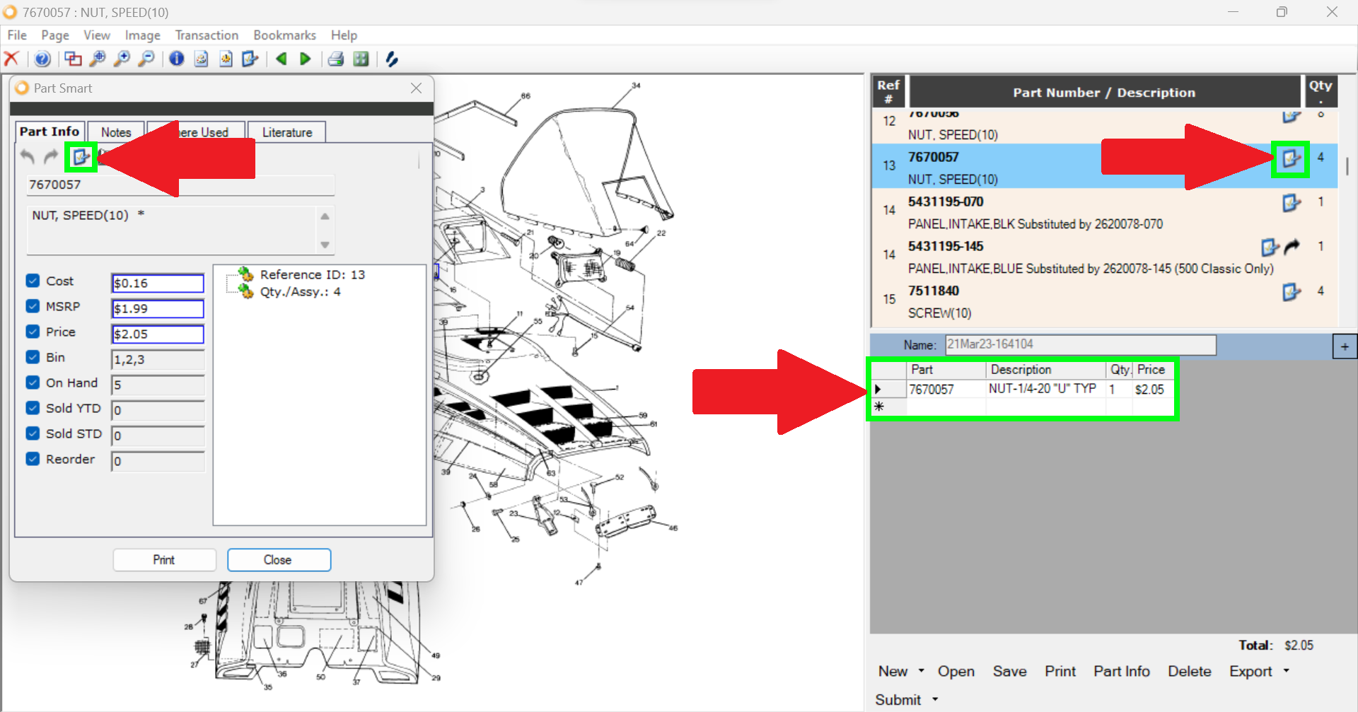f) To add this to a pick list you will click on the paper & pencil icon and it will add it below the part diagram list