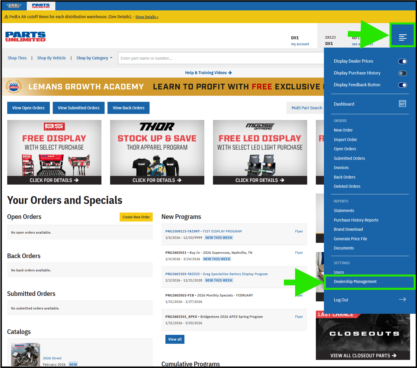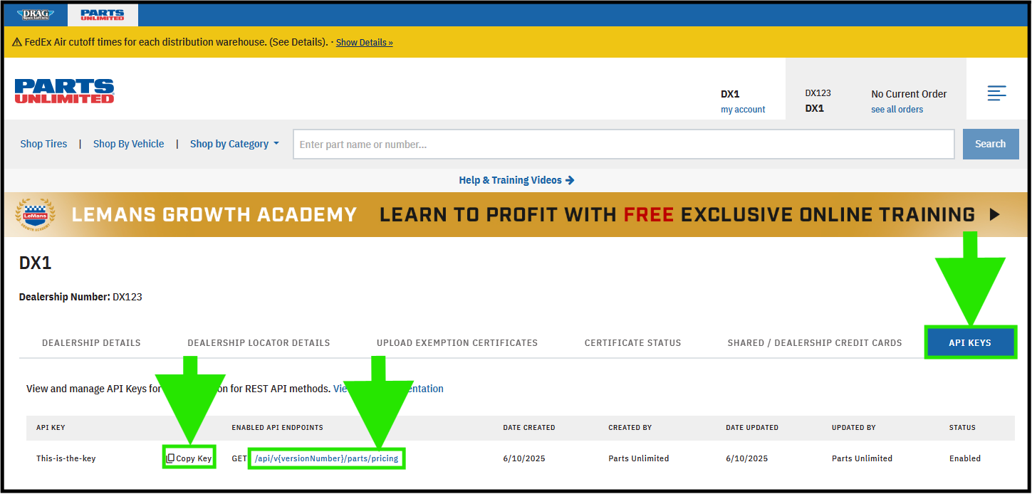 Parts Unlimited offers dealer-specific pricing that can be loaded directly into DX1, which is updated nightly. To take advantage of this feature, you need to obtain your Parts Unlimited API Access Key and enter it into DX1. Here are the steps you will need to take.