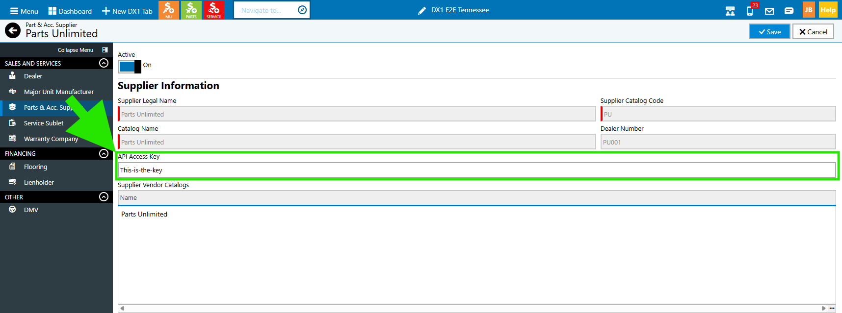 In the API Access Key field, paste in your Key from the PU Dealership Management.